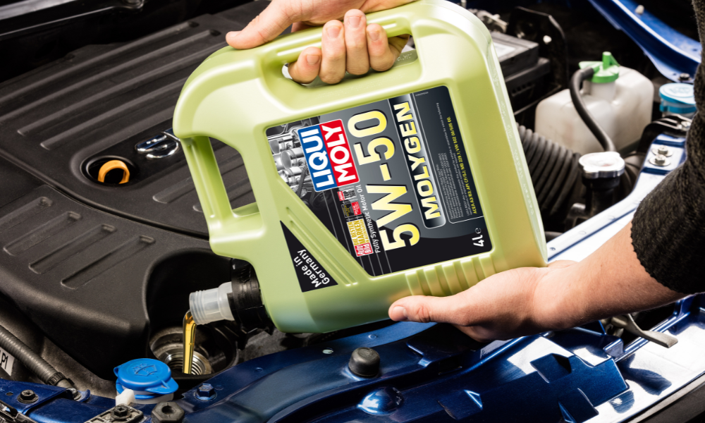 Hình 3: Sản phẩm Molygen New Generation 5W50 đang đổ trực tiếp vào động cơ.